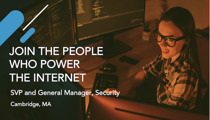Akamai is seeking an SVP and General Manager, Security in Cambridge, MA. Apply here. #applyhere #careers