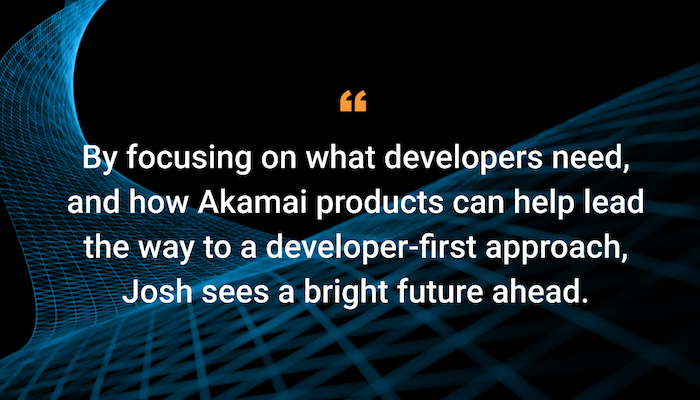 A love of technology and coding brought Josh Johnson to Akamai. Learn what he thinks a #developer-first approach means for the Akamai developer community.