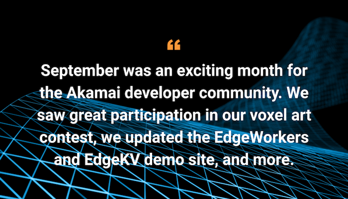 September brought on many exciting things, such as our voxel art contest, EdgeWorkers and EdgeKV demo site, and more! Learn all about it in September's developer update:Akamai Dynamic Signal