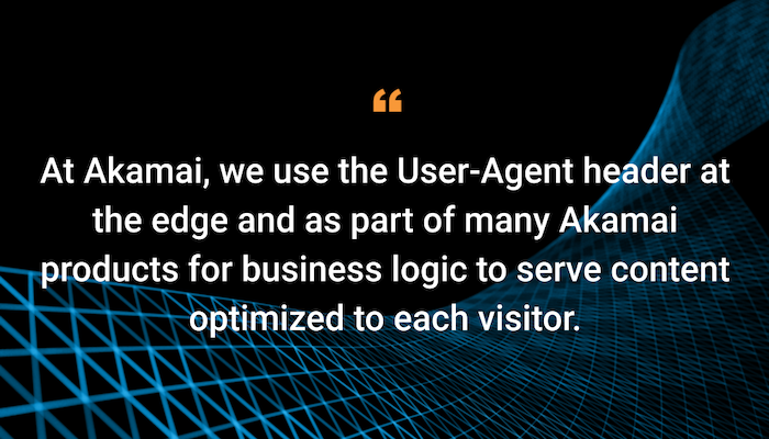 Akamai's products support Client Hints and adapt to the reduction and freezing of the User-Agent string, while still meeting customer expectations. Learn more:Akamai Dynamic Signal