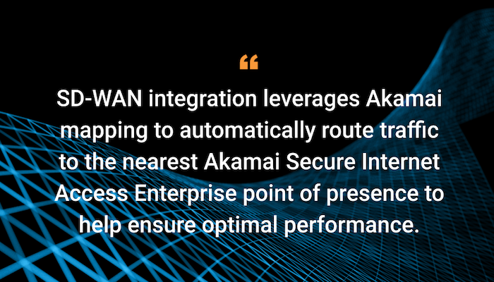 To ensure optimal performance, SD-WAN integration automatically routes traffic to the nearest Secure Internet Access point of presence. Learn more:Akamai Dynamic Signal
