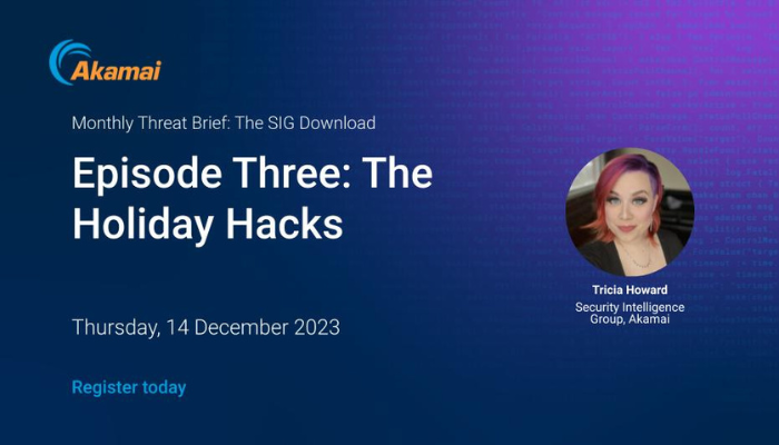 Find out how to thwart the hackers and spoil their festive fun in our Holiday Hacks episode of The SIG Download webcast series. Sign up today. #AkamaiSecurity #cybersecurity