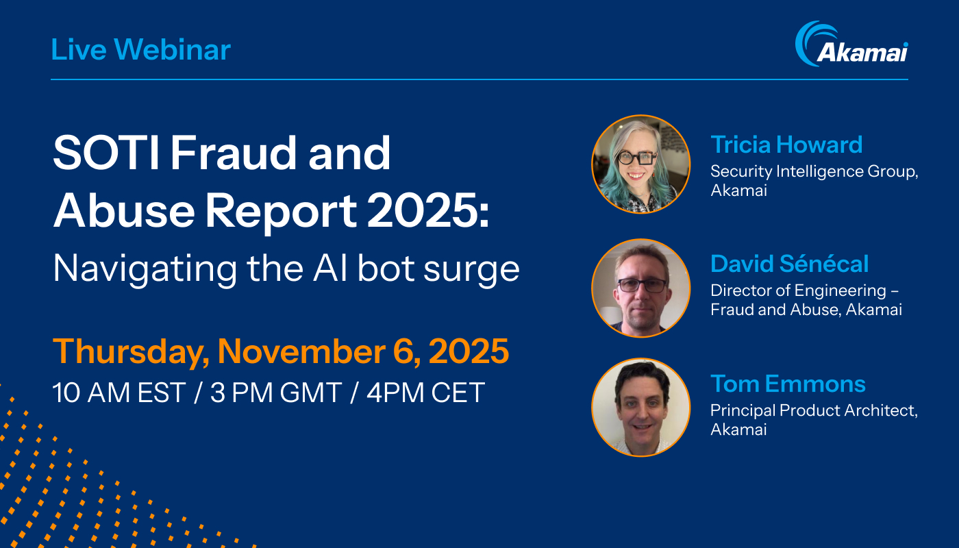 Join our live webinar to learn how to separate helpful from harmful AI bot traffic and protect your business.Akamai Dynamic Signal