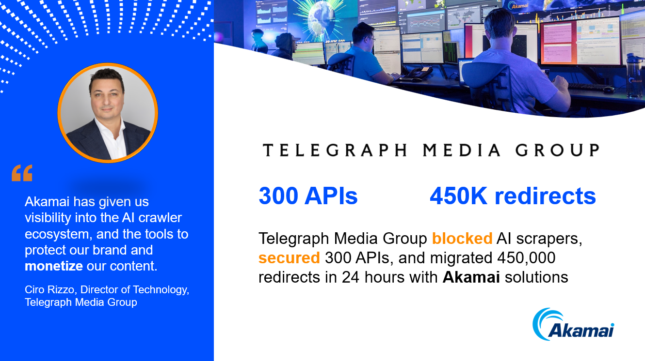 Content scrapers, limited API oversight, and complex redirect management threatened The Telegraph’s audience engagement and revenue. See how Akamai blocked bots, secured APIs, and streamlined redirects.