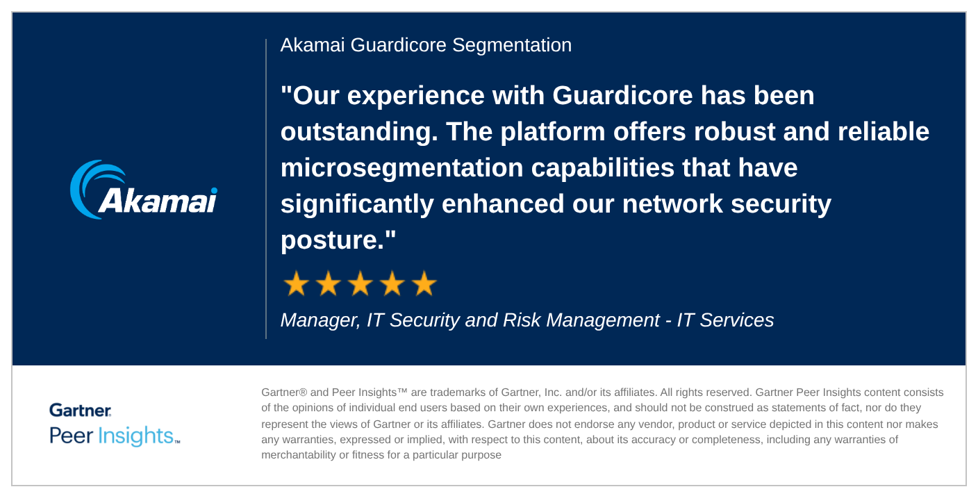 Manager, IT Security and Risk Management in the IT Services Industry gives Akamai Guardicore Segmentation 5/5 Rating in Gartner Peer Insights™ Microsegmentation Market. Read the full review here: #gartnerpeerinsights